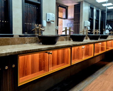 A complete transformation of visitor washrooms, redesigned for durability, comfort, and seamless day-to-day functionality.